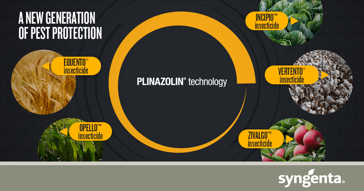 Syngenta’s PLINAZOLIN® technology has received registration from the Environmental Protection Agency and is now available for use, subject to state approvals. PLINAZOLIN technology will power five separate insecticide products for use in corn, cotton, vegetables, tree fruit, cereals and more.
