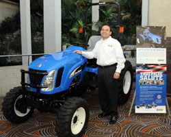 The New Holland Boomer Tractor that has put in time at Jay Leno’s Garage is now going to the auction block to raise funds for a good cause. Nicknamed “Lil Tug,” by the crew at Jay’s Garage, the tractor made an appearance at the NAFB Convention before starting a tour that ends at auction in January. At the same time, New Holland announced a discount/contribution initiative to coincide with the fundraising effort with the tractor auction. Pictured is Abe Hughes, Vice President of Sales and Marketing for New Holland Agricultural Business in North America, with Lil Tug.